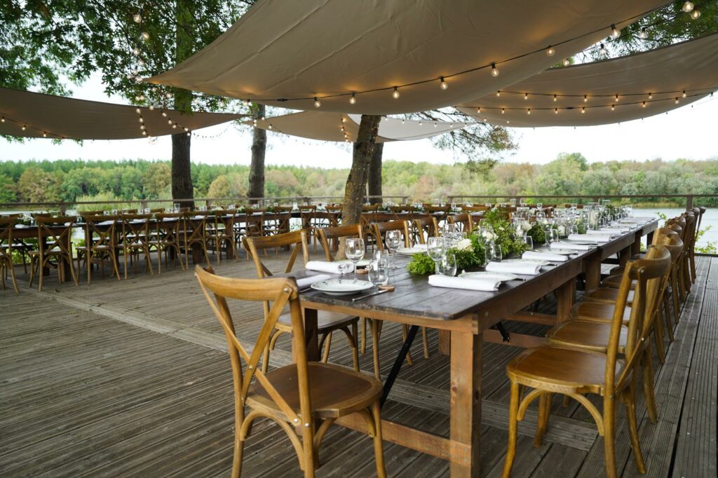 Nous travaillons avec une équipe de prestataires de confiance : fleuriste, DJ, location de mobilier et vaisselle, etc. Nous assurons la coordination pour que tout s’intègre parfaitement à votre projet.