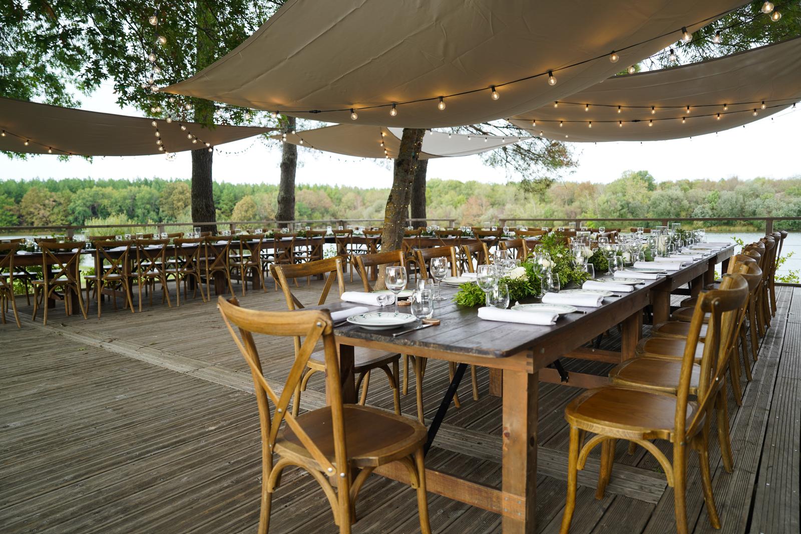 Pour un cadre encore plus romantique, vous pouvez profiter des bords du lac, où le reflet de l’eau et la tranquillité des lieux créent une atmosphère magique et intime. Chaque espace extérieur peut être aménagé selon vos envies, pour une cérémonie à votre image, au cœur de la nature et loin de l’agitation.